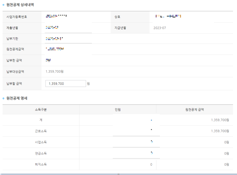 그러면 아래와 같이 원천공제된 내역을 조회할 수 있고, 해당 건을 클릭하여 납부가 가능합니다.