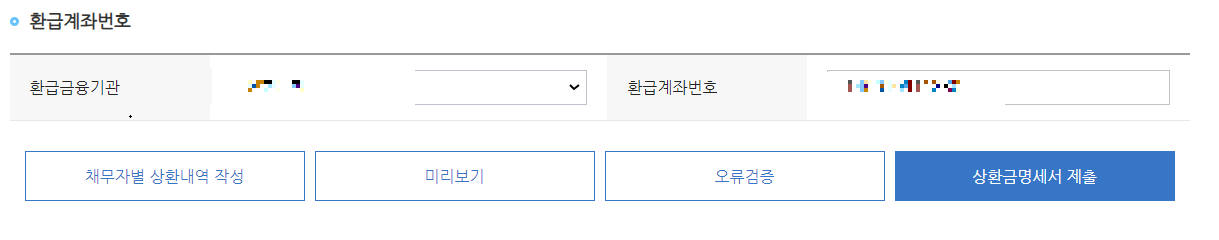 오류검증이 완료되면 아래와 같이 '상환금명세서제출'이라는 칸이 추가로 생성되는데, 이를 클릭해줍니다.